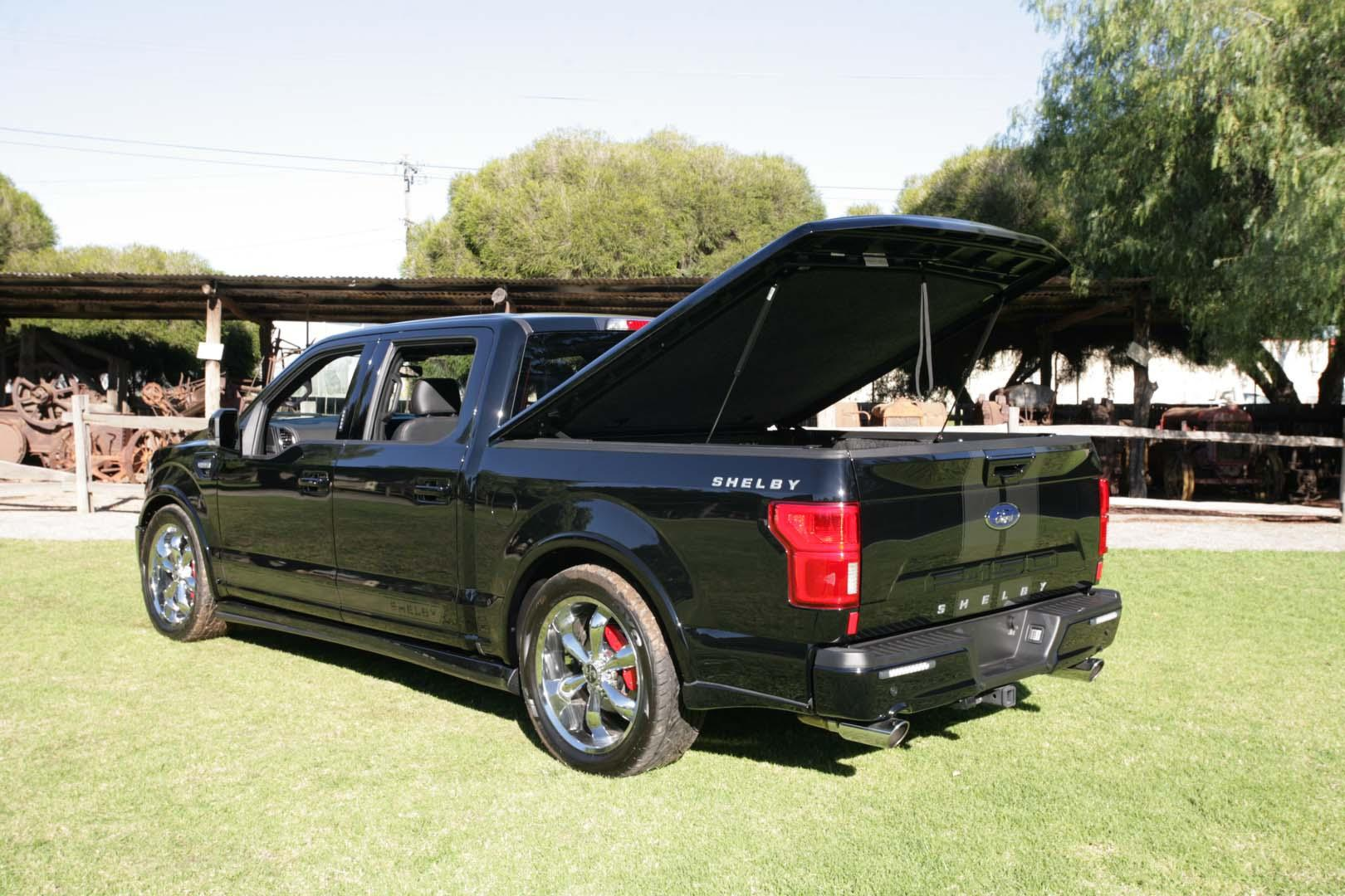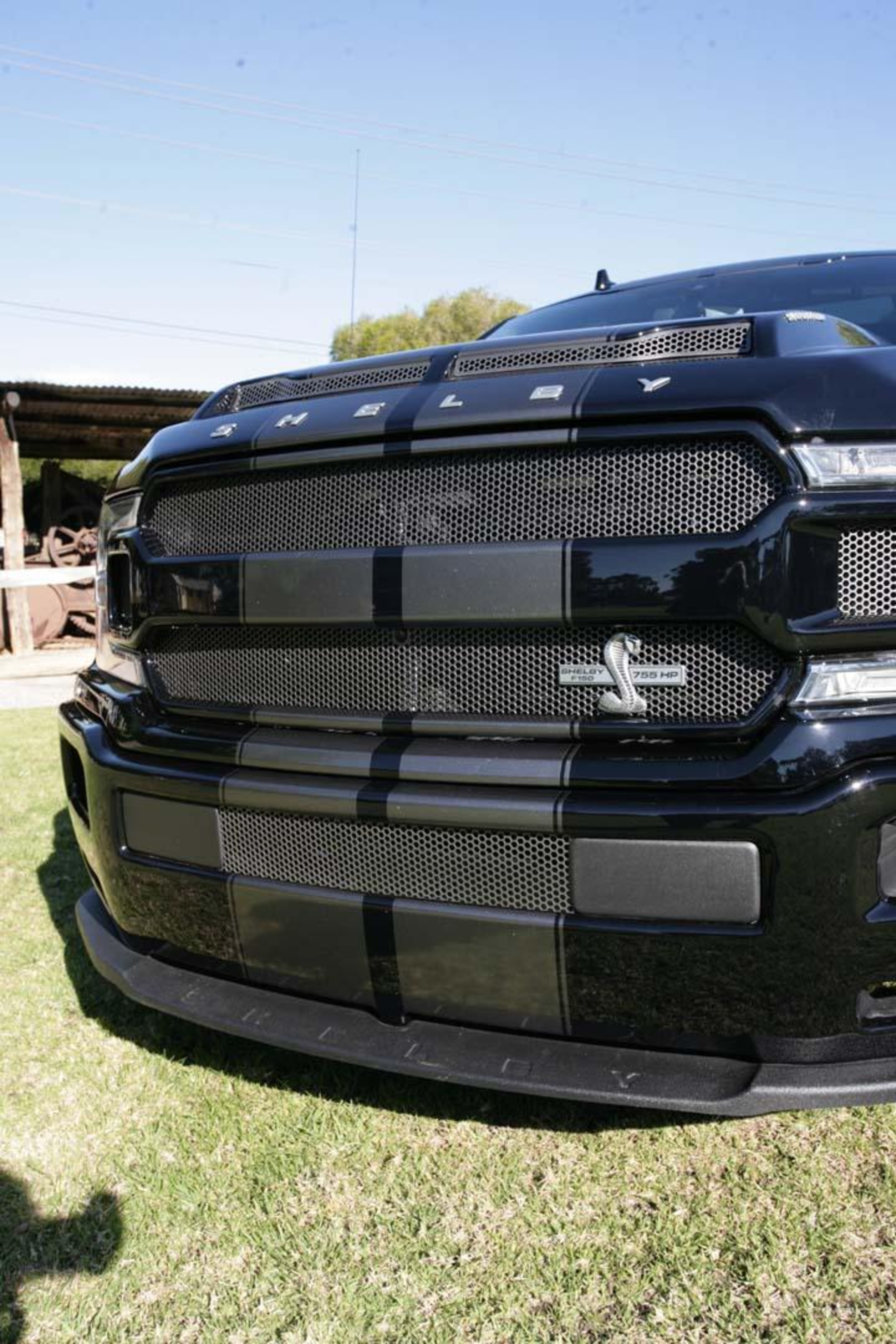 To the dual cab body, Shelby adds fender flares, vents and a custom front bumper in body colour, a honeycomb grille insert, body-coloured rear bumper and hard tonneau, full-length dual body stripes and Shelby identification on the flanks, bonnet, tailgate and load bed.